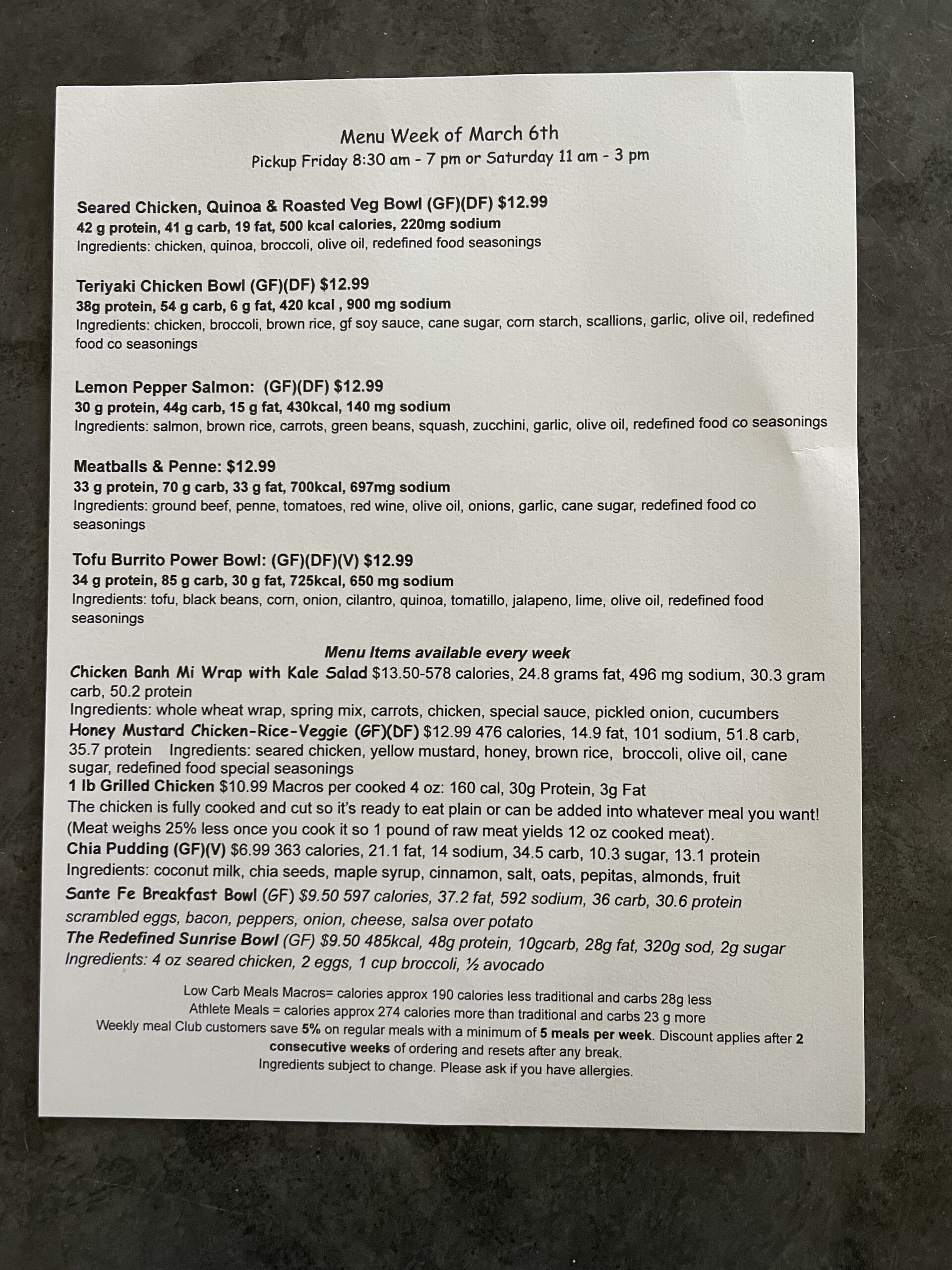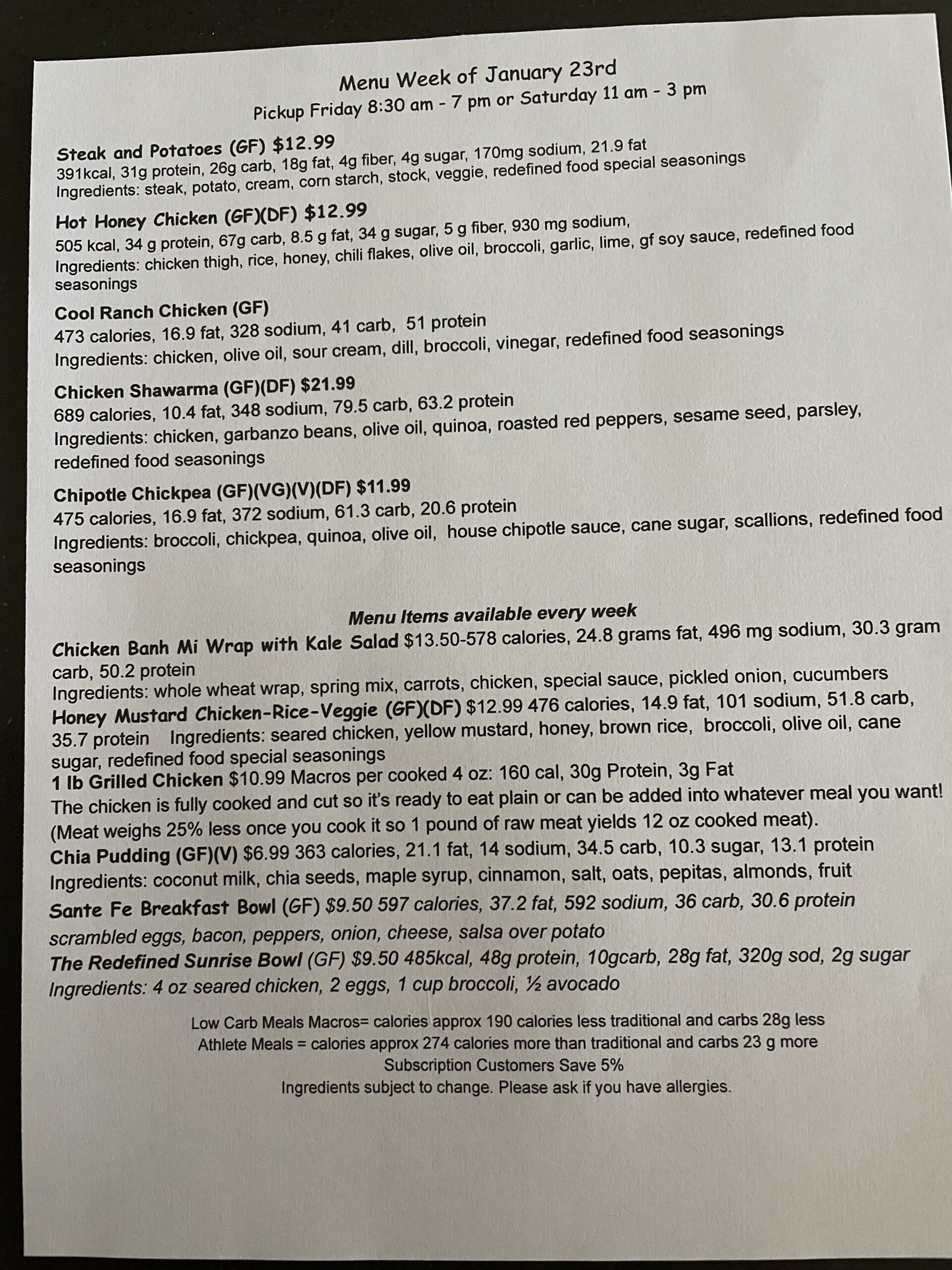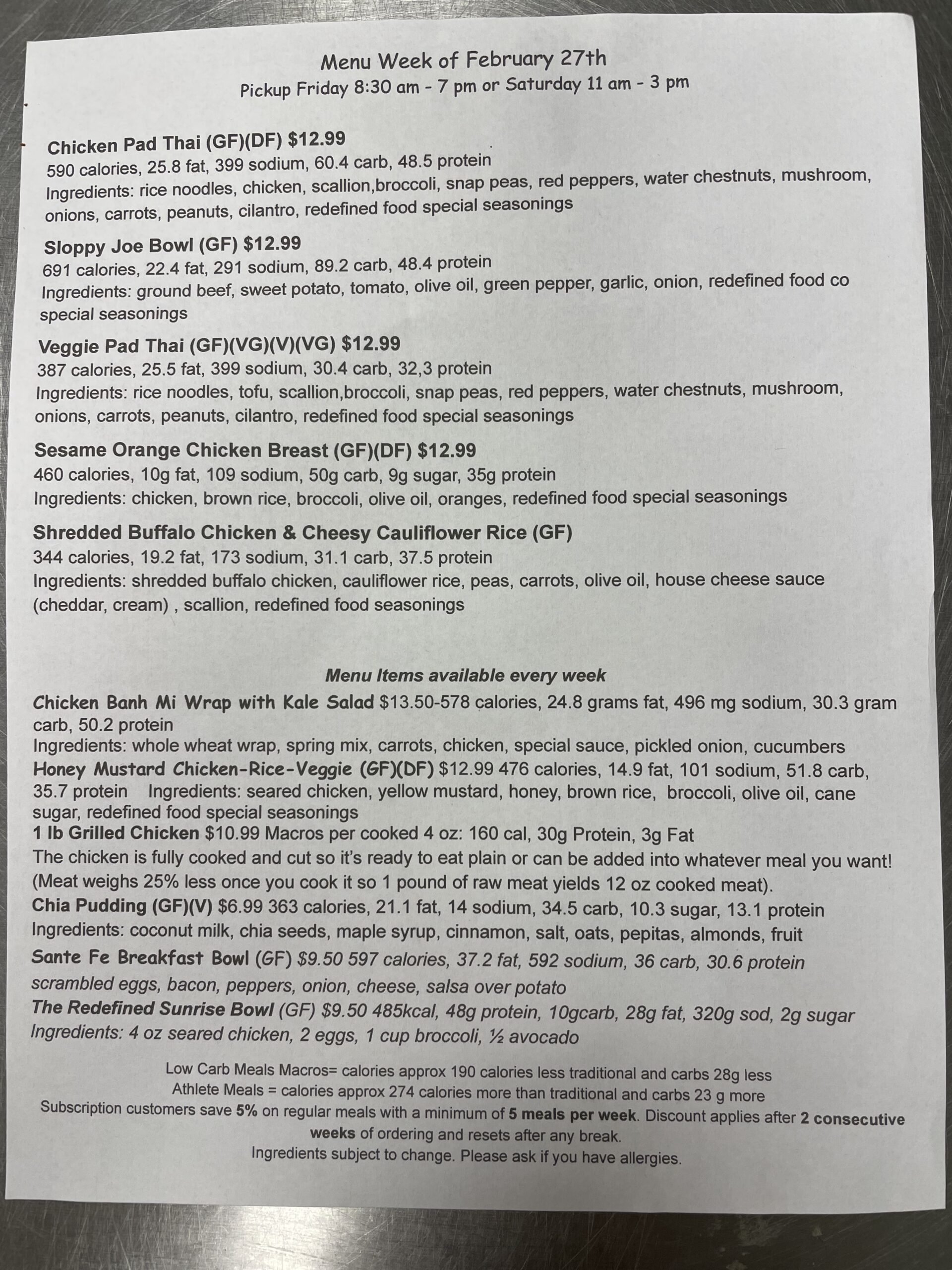 Our meal subscription menu changes every week. Check back here regularly to see our most current meal prep menus.