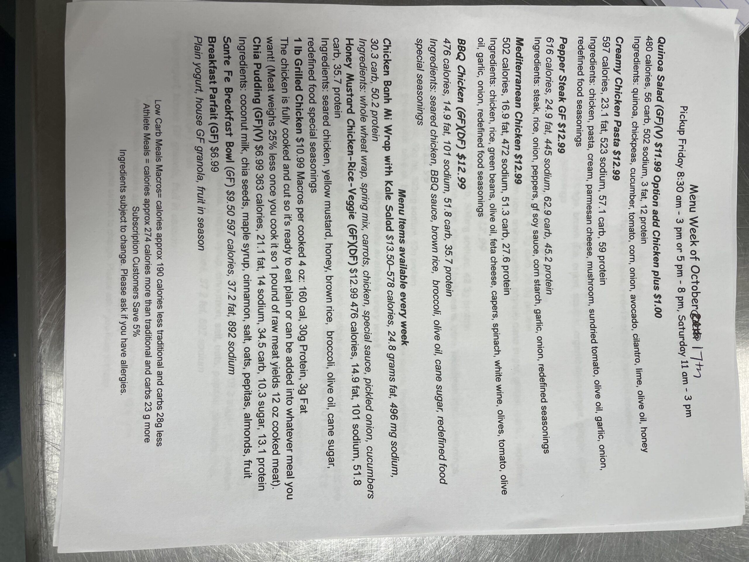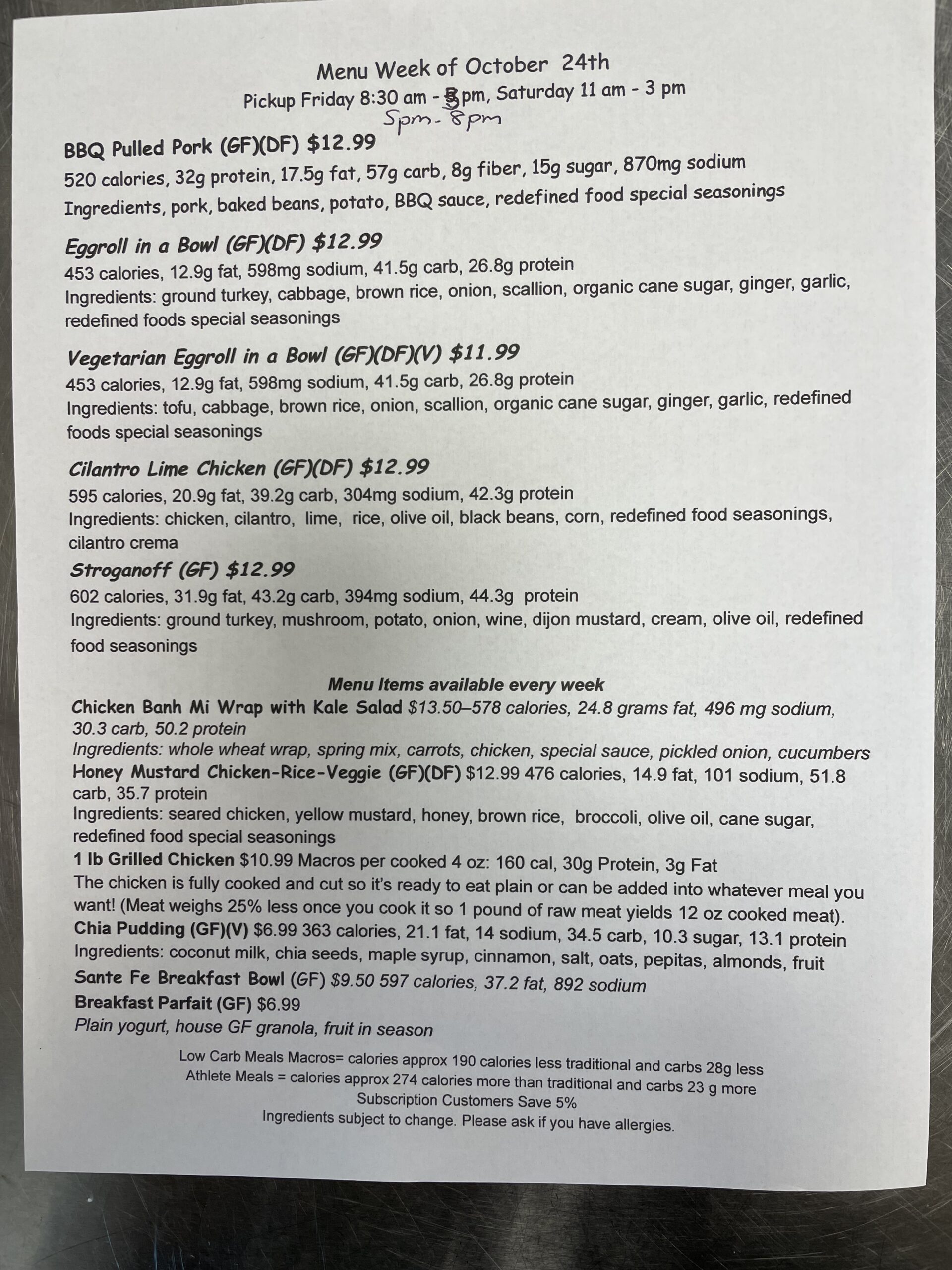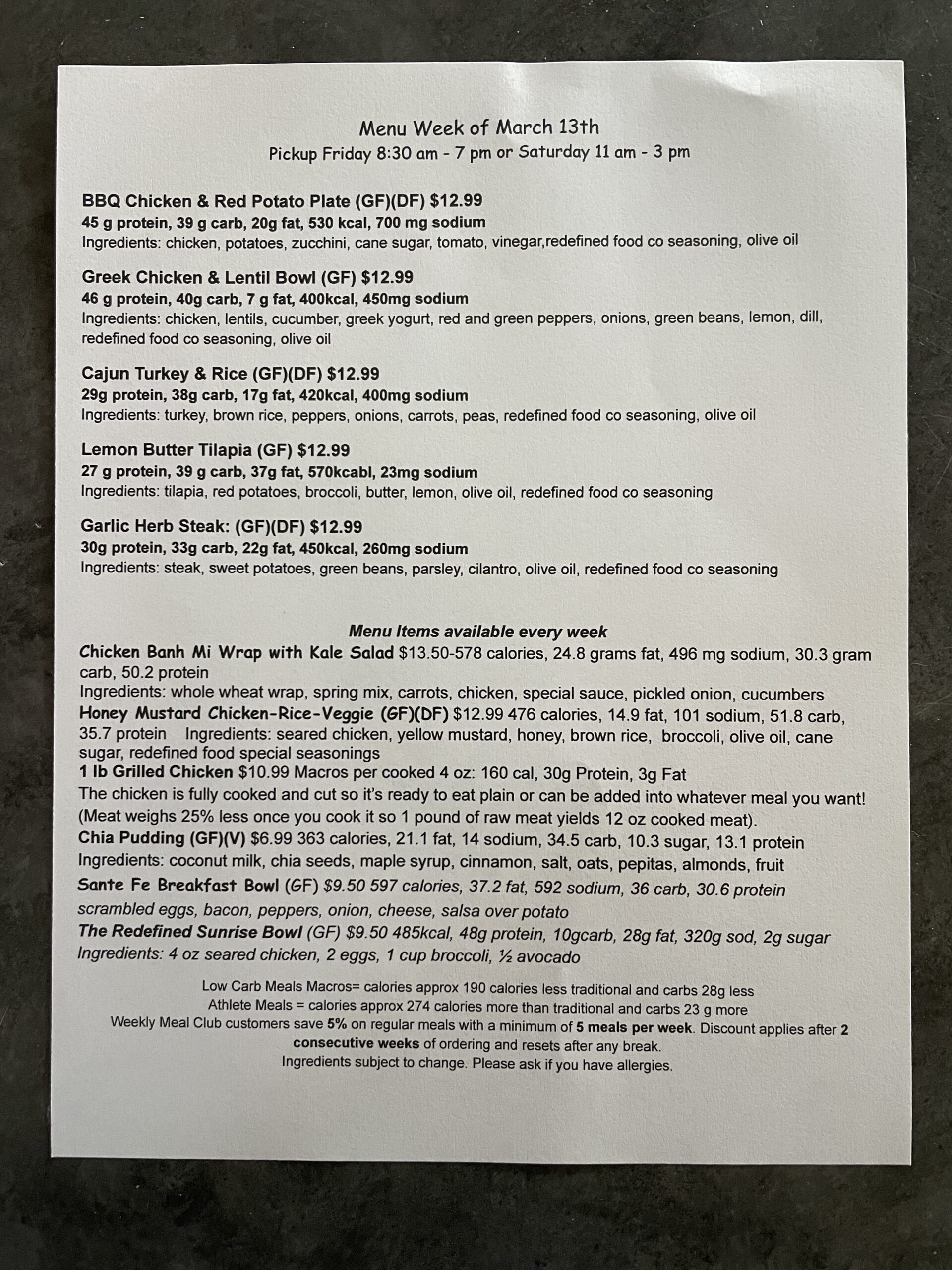 Our meal subscription menu changes every week. Check back here regularly to see our most current meal prep menus.