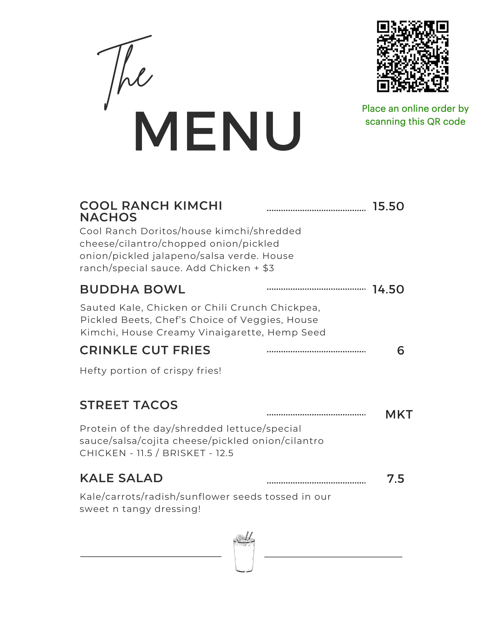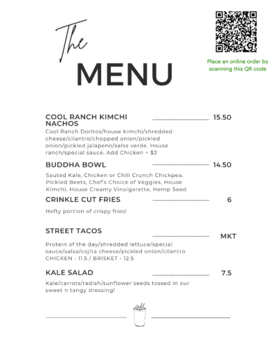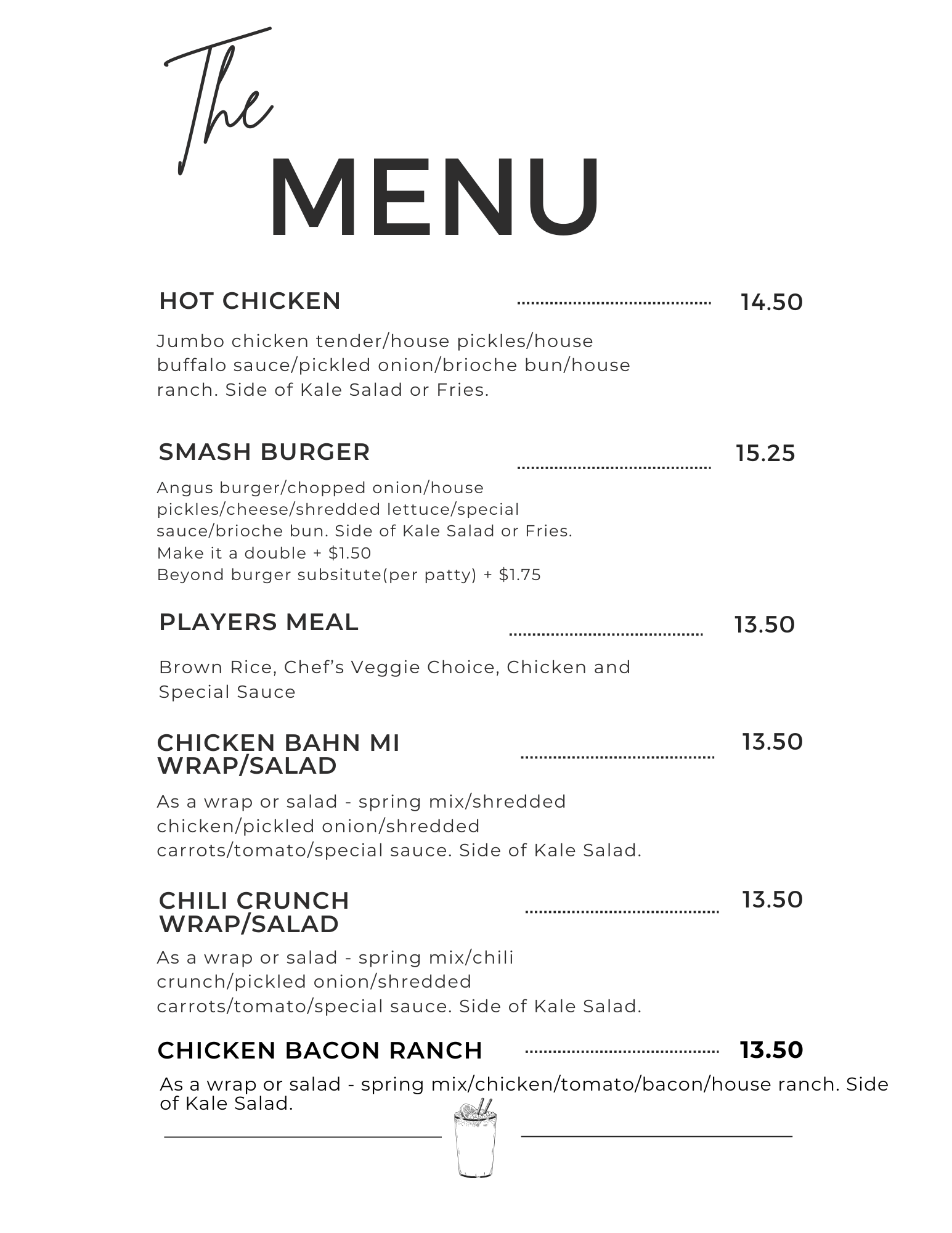 Our dine in menus have changed! Check out all of our new menus here. We offer a new variety of foods including wraps, salads, burgers and so much more!